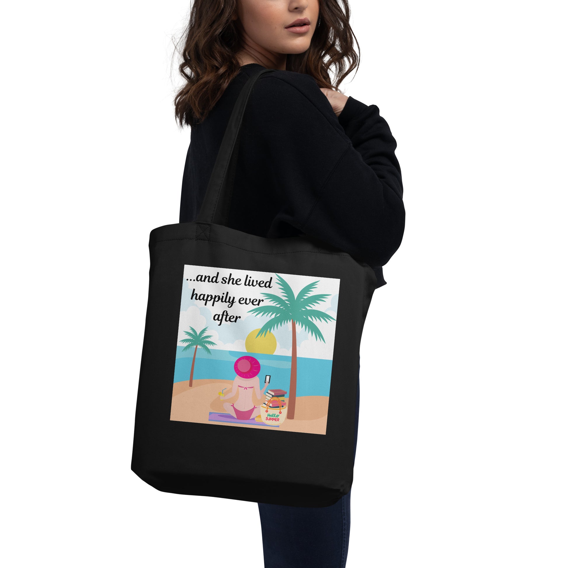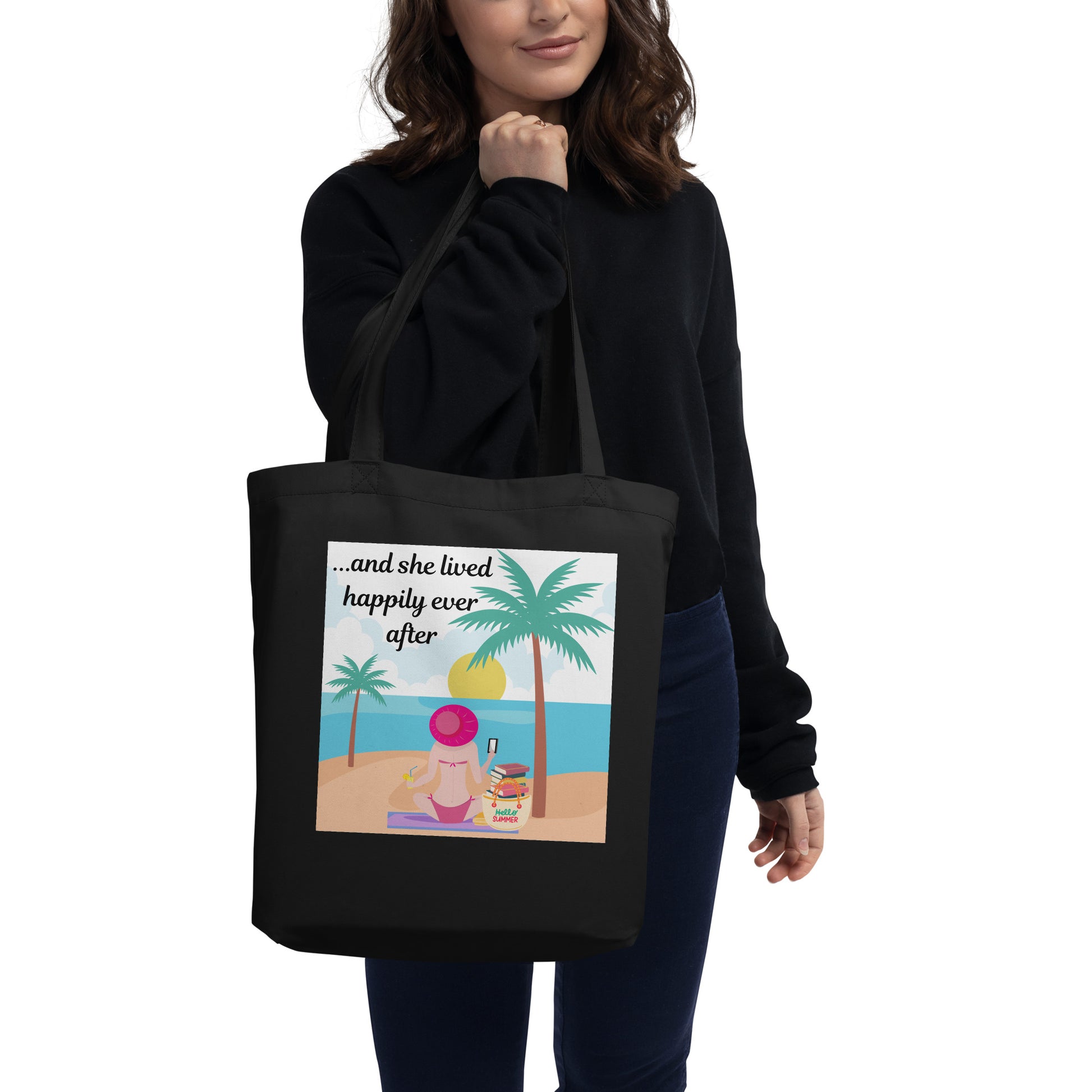 And She Lived Happily Ever After Eco Tote Bag holds 30 pounds of books! Say goodbye to plastic and bag your goodies in this organic cotton tote bag. It has more than enough room for groceries, books, and anything else.