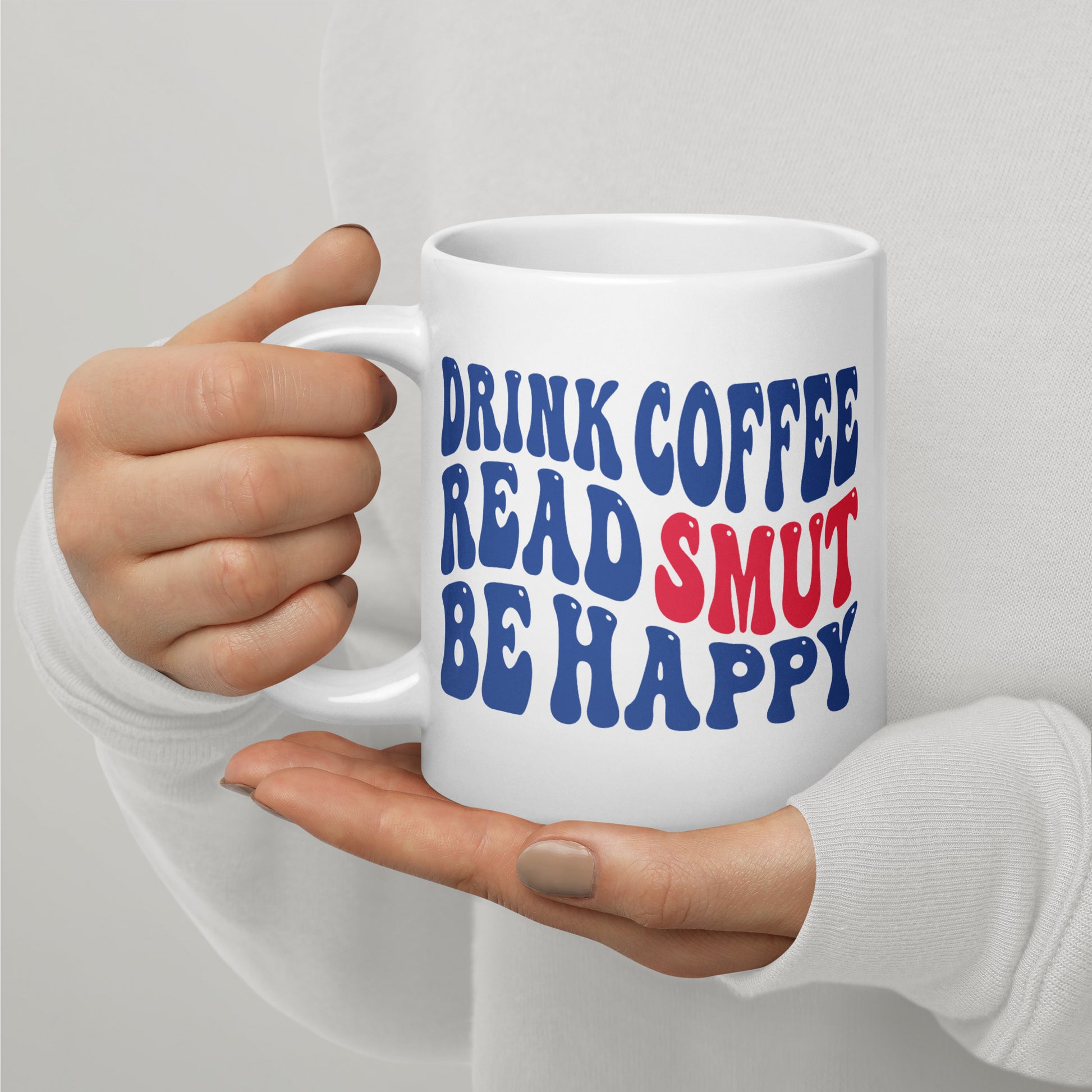Drink Coffee - Read Smut - Be Happy mug is my mantra. Fill up this fun bookish mug with your favorite hot beverage, and grab a spicy book.