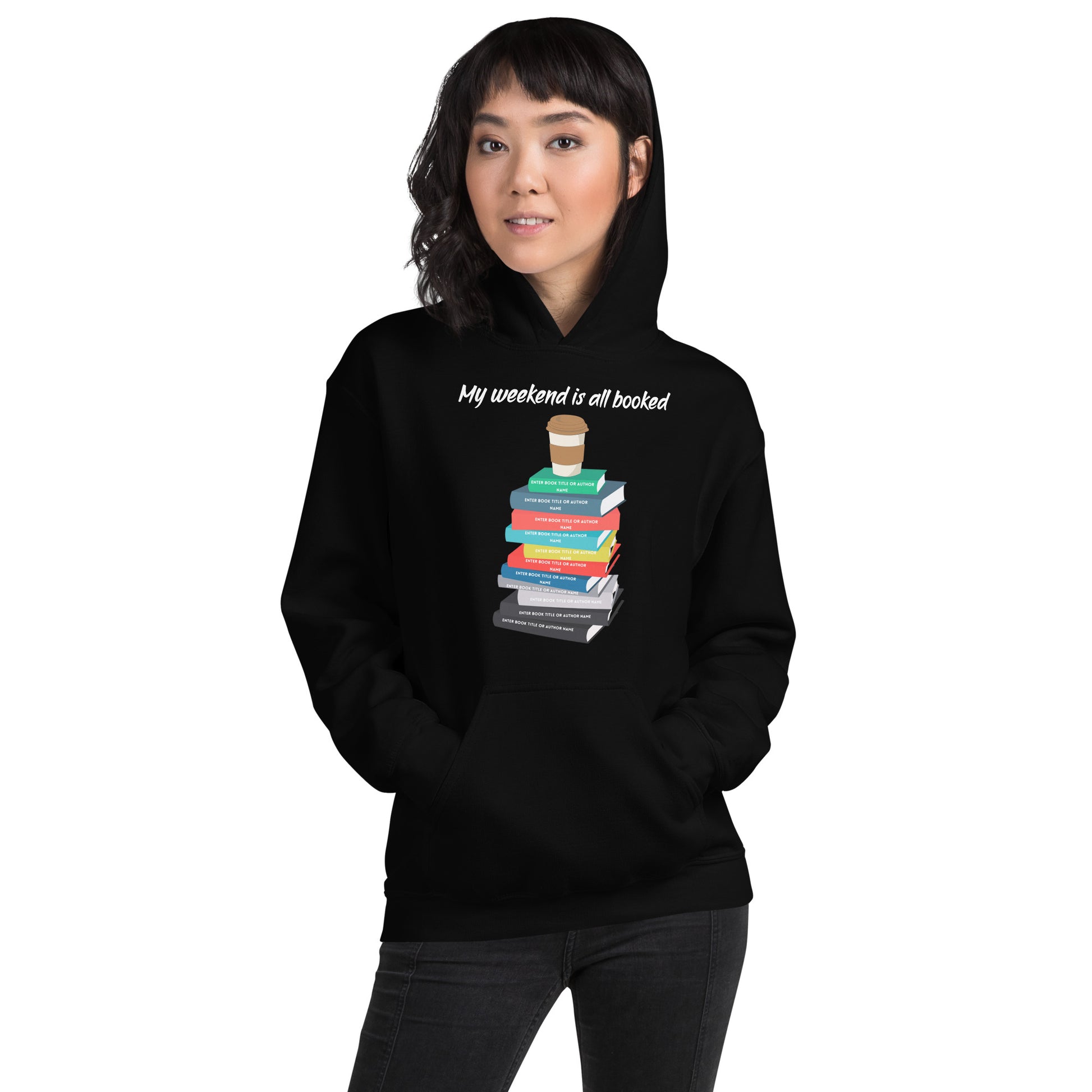 Show off your literary love with our customizable book stack hoodie! Personalize it with your favorite book titles, author names, and even a favorite beverage, creating a unique design perfect for any book lover. Whether treating yourself or surprising a fellow bookworm, this cozy hoodie makes the ultimate thoughtful gift. Crafted for comfort and designed to celebrate your passion for reading, it's a must-have for book besties and bibliophiles alike. U.S. FLAT-RATE SHIPPING IS FREE ON ORDERS OVER 35.00.