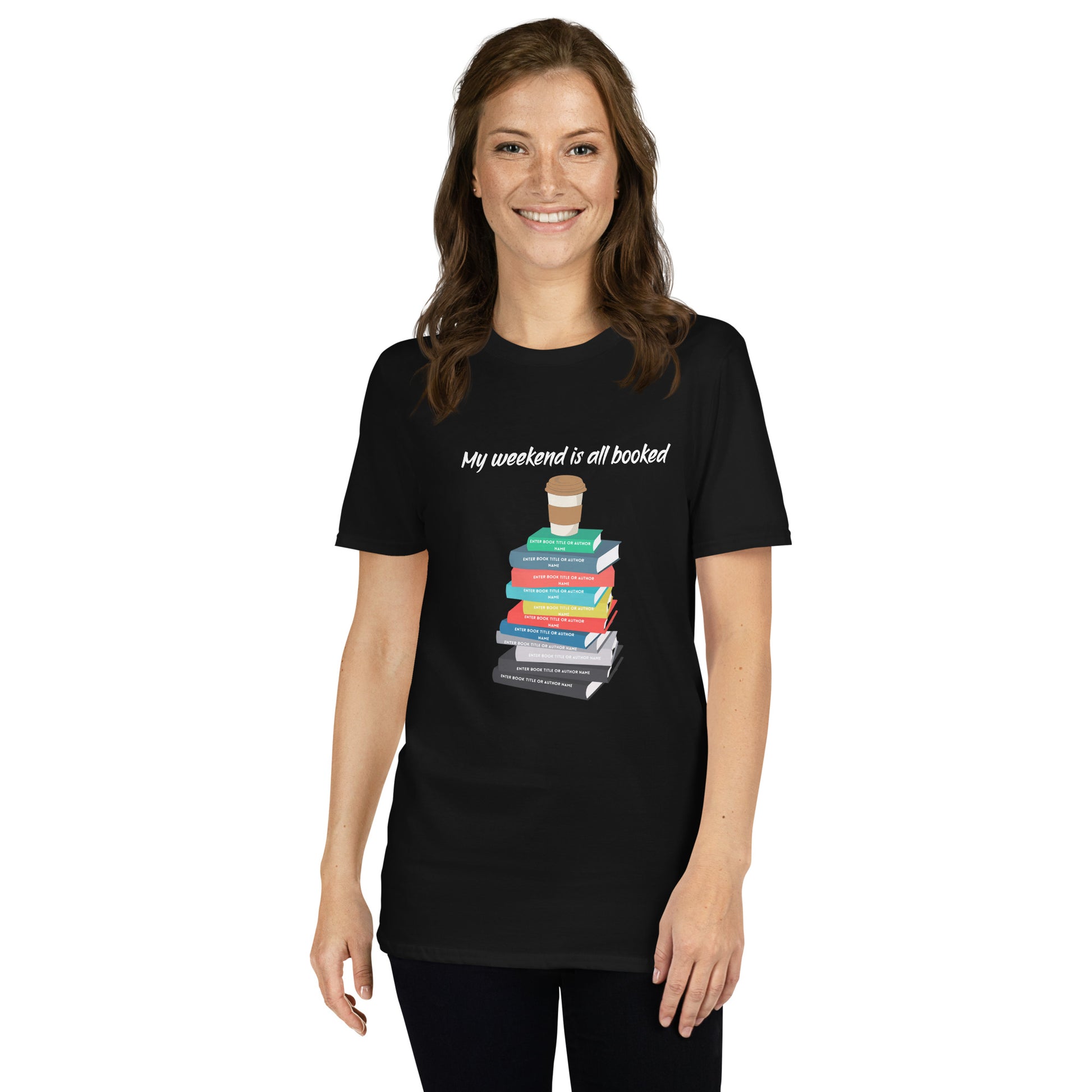 Show off your literary love with our customizable book stack t-shirt. Personalize it with your favorite book titles, author names, and even a favorite beverage, creating a unique design perfect for any book lover. Whether treating yourself or surprising a fellow bookworm, this cozy t-shirt makes the ultimate thoughtful gift. Crafted for comfort and designed to celebrate your passion for reading, it's a must-have for book besties and bibliophiles alike. FREE SHIPPING ON ORDERS OVER 35.00