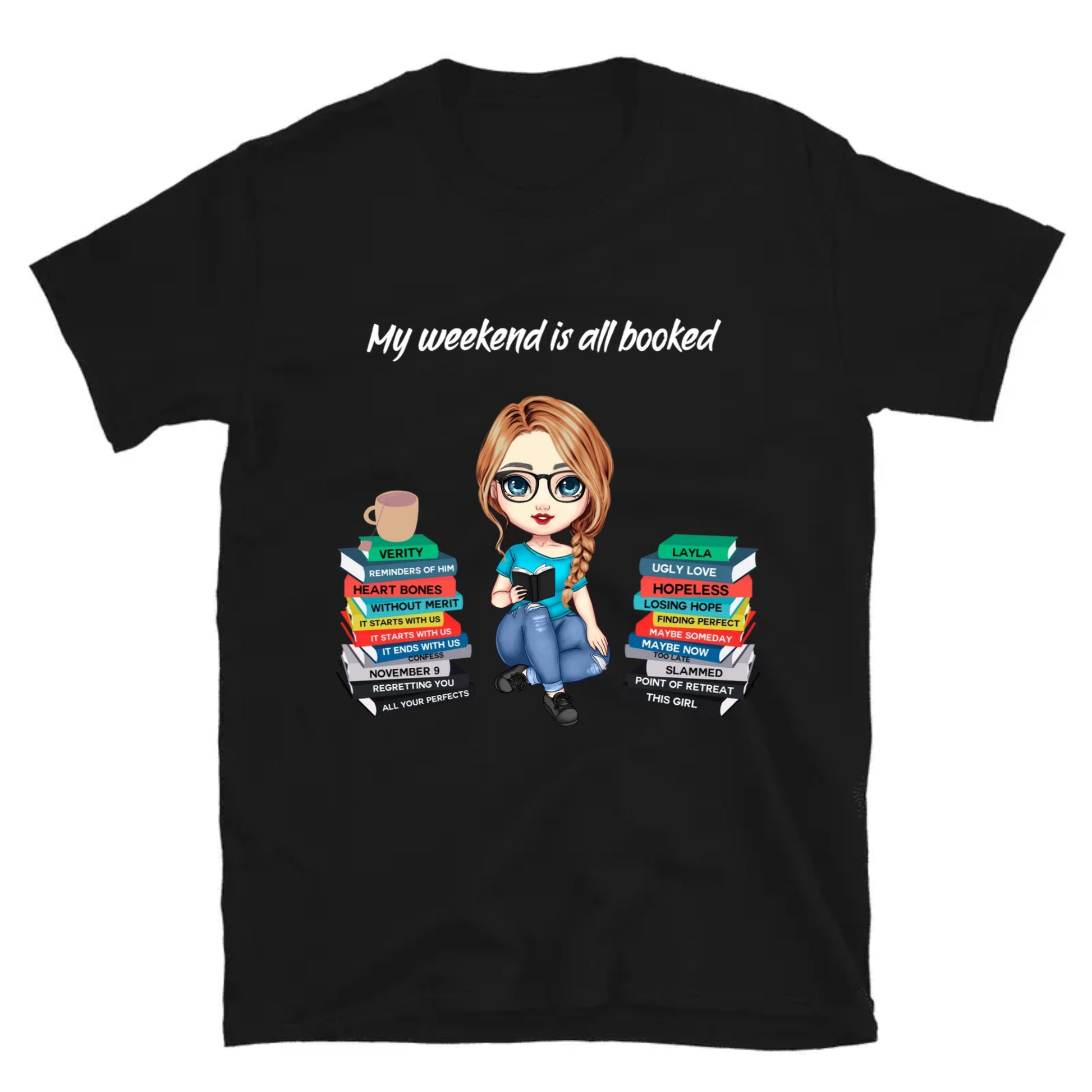 This personalized Colleen Hoover book stack t-shirt is perfect for fans of Colleen's books. Personalize this t-shirt with your favorite book titles, eyes, hair, beverage clothes, and more!