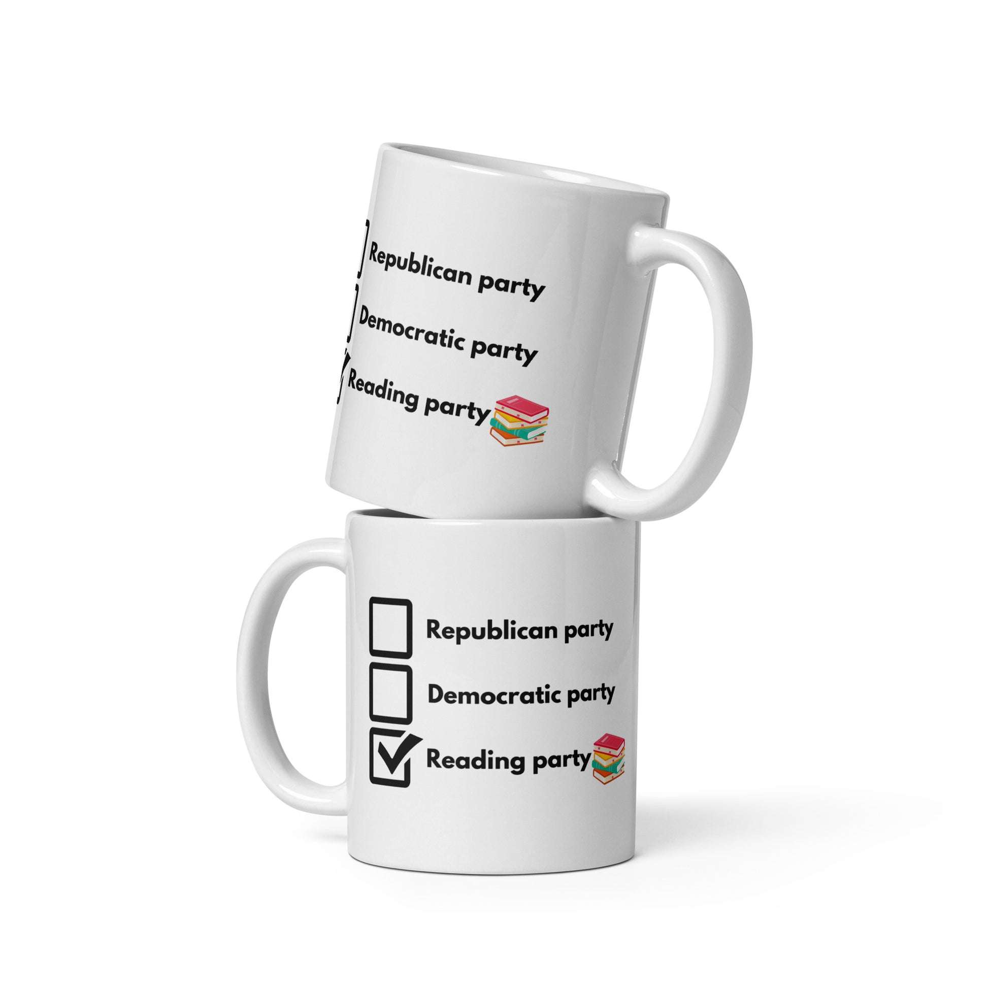 I'm joining the Reading Party! This book lover's mug will cause a few giggles even after the election is over. Whether you're drinking your morning coffee, evening tea, or something in between—this mug's for you! It's sturdy and glossy with a vivid print that'll withstand the microwave and dishwasher. Get out and vote! FREE SHIPPING ON ORDERS OVER $35.00!