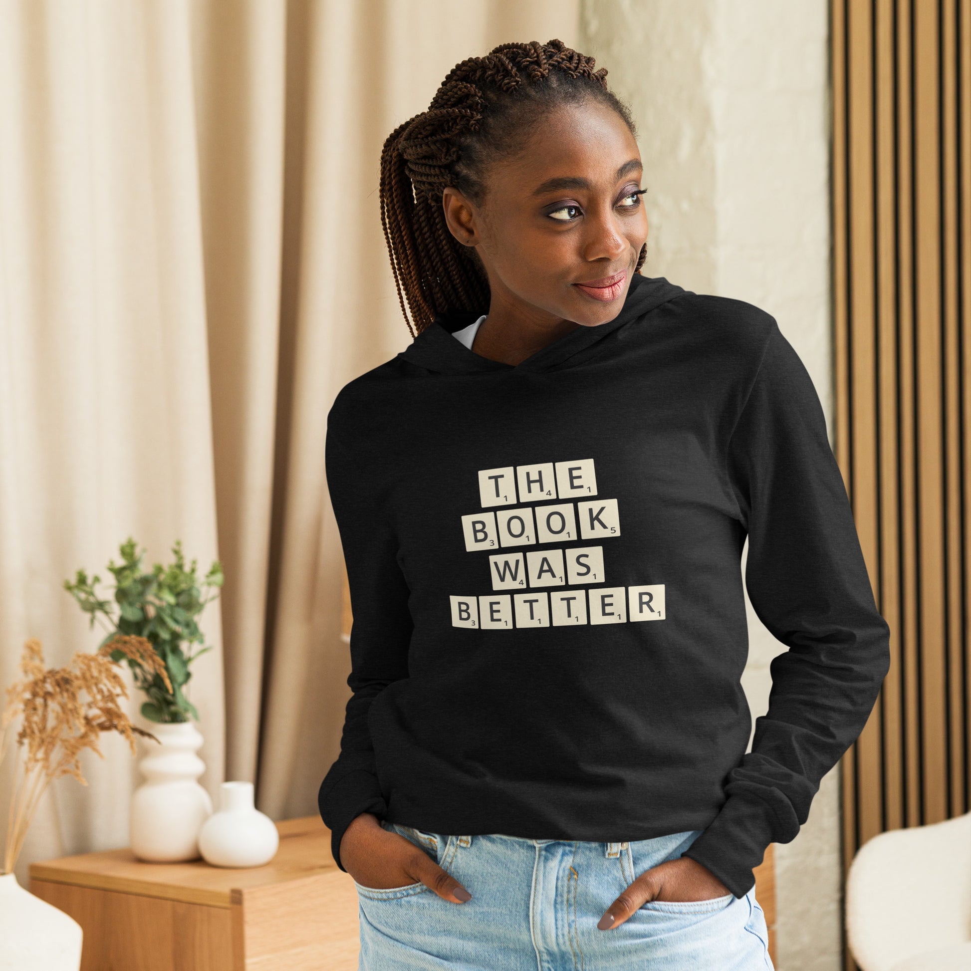 Stay cozy and stylish with the best of both worlds—our The Book is Better Scrabble letters hoodie t-shirt. This perfect blend of comfort and casual flair combines the softness of a classic T-shirt with the comfort of your favorite hoodie. Whether you’re curling up with a book or heading out, the lightweight, breathable fabric keeps you feeling great, while the hoodie offers an extra layer of warmth when you need it.